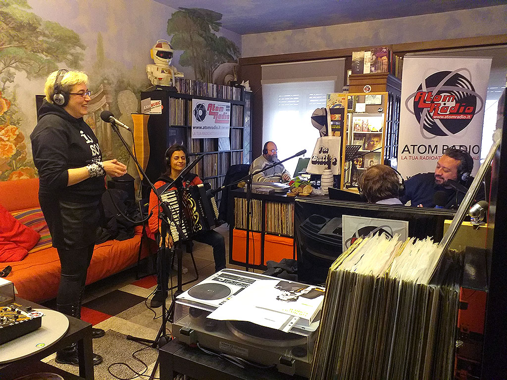 Bianca 'la Jorona' Giovannini e Desirée Infascelli ad Atom Radio, trasmissione "IndieLand - Il Parcogiochi dell'Indipendenza" condotta da Simone Mercurio, ospiti con AchiOfficial e Carlo Morosetti